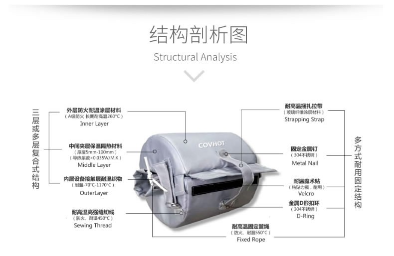 可拆卸截止阀保温套可以满足不同领域的柔性保温应用需求。可以很方便进行拆装操作,可重复多次使用,以最大化其经济效益,降低热损耗。对于一些表面形状特殊、复杂的设备隔热(防火),柔性隔热防火)套也能显示其独特的优势。经测试计算,采用本产品后,通常可节约热能达90%以上。有些用户短投资回收期仅为6个月左右。