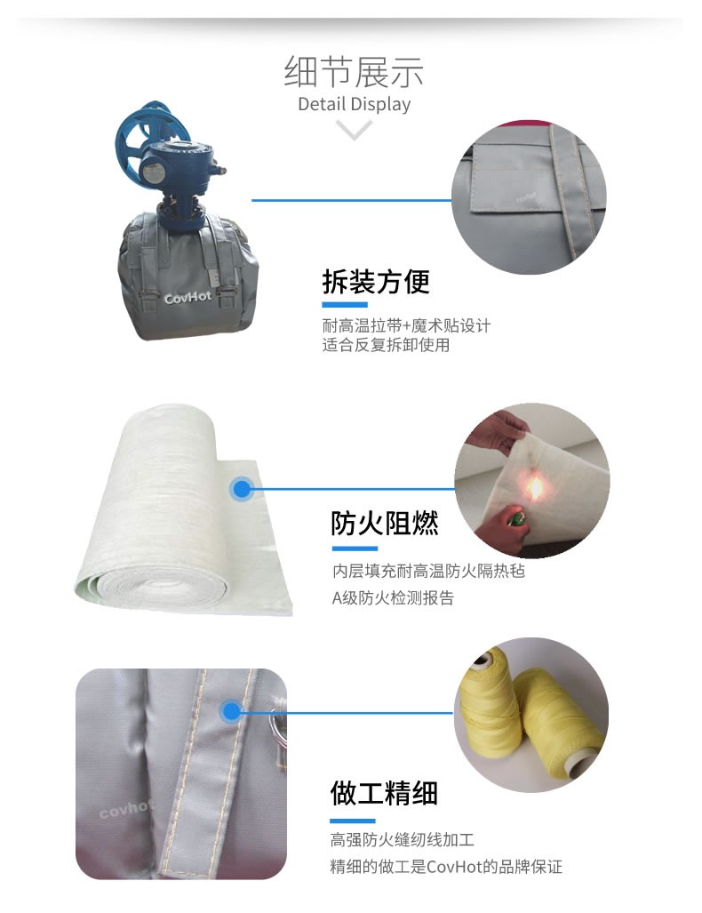 7. 设计:采用单层和多层可拆卸式保温衣设计,通过魔术贴和皮带连接,安装拆卸十分简易,不需要专业技术人员。