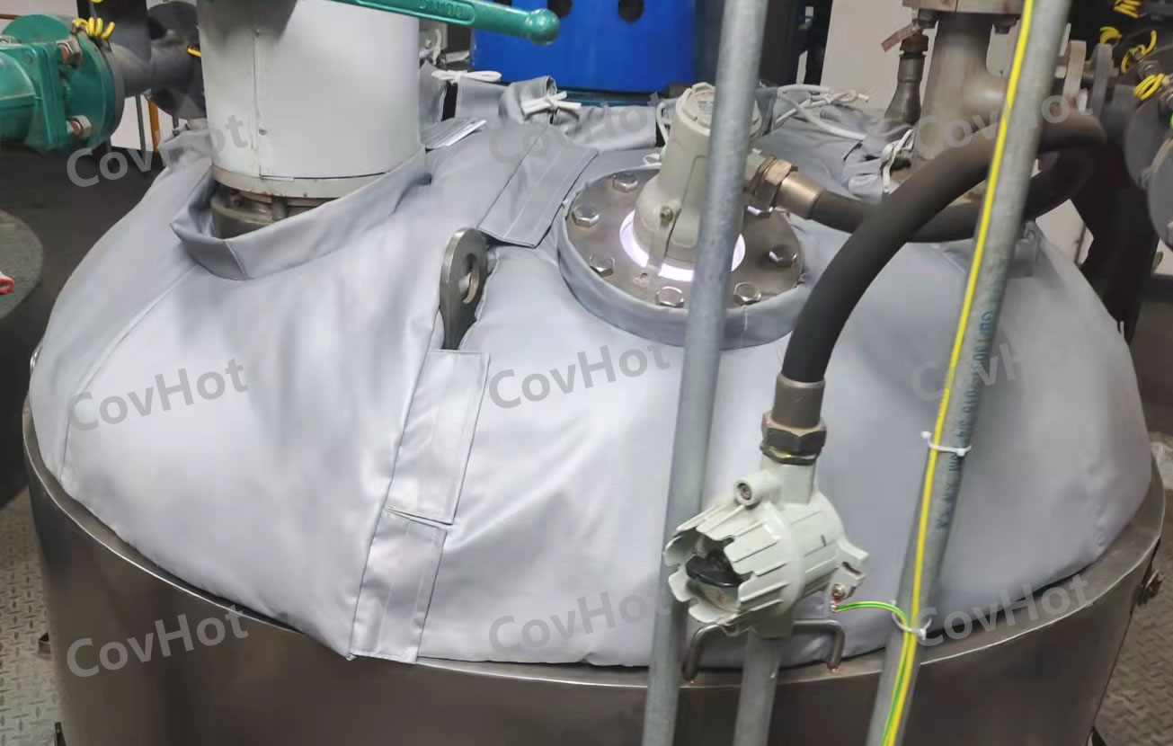 可拆卸柔性反应釜保温隔热衣具有方便安装和拆卸,节约工厂电能,降低经济成本,使用寿命长,产品经久耐用的特点。能够有效改善工作场所的热环境,降低车间温度。有效提高加工效率,避免等待加温升温时间,保护人员安全问题,有效避免烫伤。Covhot柔性保温套在制作时可以实现反应釜保温套的量身定制,根据设备的使用场景以及设备保温需求制定最优技术解决方案。