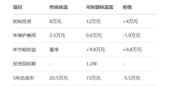 数据表明,虽然初始投资高50%,但可拆卸方案可在14个月内通过节能收益收回差价。