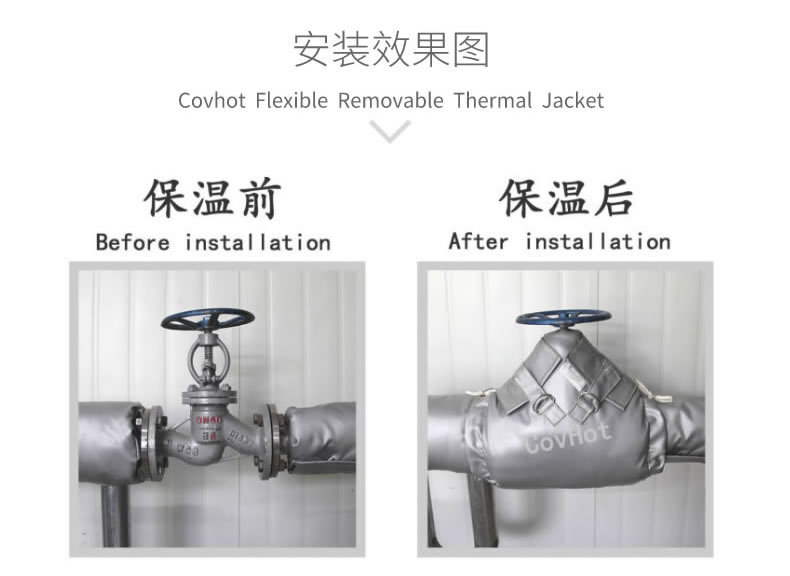 3. 维护的便利性,如果阀门需要维修或者拆装,普通岩棉保温拆除后无法二次利用,柔性可拆卸阀门保温套可以循环使用。