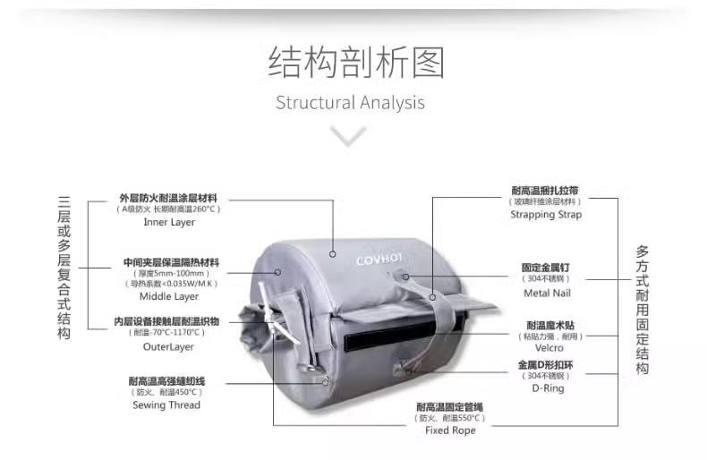 1、绝热保温效果好,隔热层采用新型柔性耐热纤维隔热材料,耐温范围广,最高能达到1000℃以上。