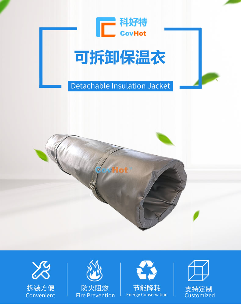 管道保温(定制)衣,也可以叫做管道保温(定制)套。管道保温(定制)衣使用耐高低温、防火保温材料制作而成,拆卸安装方便简单,保温隔热性能高,可使高达500°C的管道表面温度降低至50℃以下。